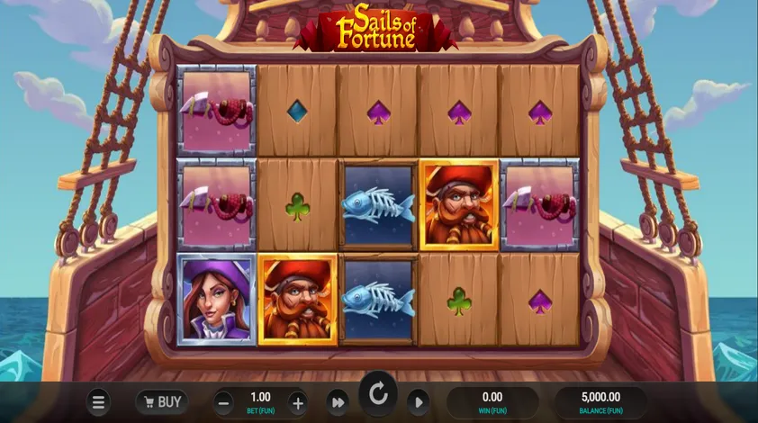 Sails of Fortune est une machine à sous en ligne qui invite les joueurs à embarquer pour une aventure maritime pleine de promesses et de mystères. Développée par Relax Gaming, cette machine à sous offre un design captivant inspiré des explorations en mer, où les pirates, les trésors et les océans vastes sont à l’honneur. Avec sa configuration de 5 rouleaux et ses nombreuses lignes de paiement, Sails of Fortune propose une expérience de jeu palpitante, idéale pour les amateurs de sensations fortes et de récits d'aventures.